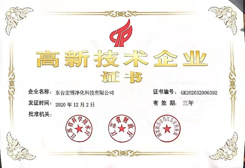 2020年,宏博企業(yè)江蘇宏博氣體裝備科技有限公司,生產(chǎn)基地-東臺(tái)宏博凈化科技有限公司同時(shí)獲評(píng)高新技術(shù)企業(yè),并于近日收到由江蘇省科學(xué)技術(shù)廳、江蘇省財(cái)政廳、國(guó)家稅務(wù)總局江蘇省稅務(wù)局聯(lián)合頒發(fā)的《高新技術(shù)企業(yè)證書(shū)》。